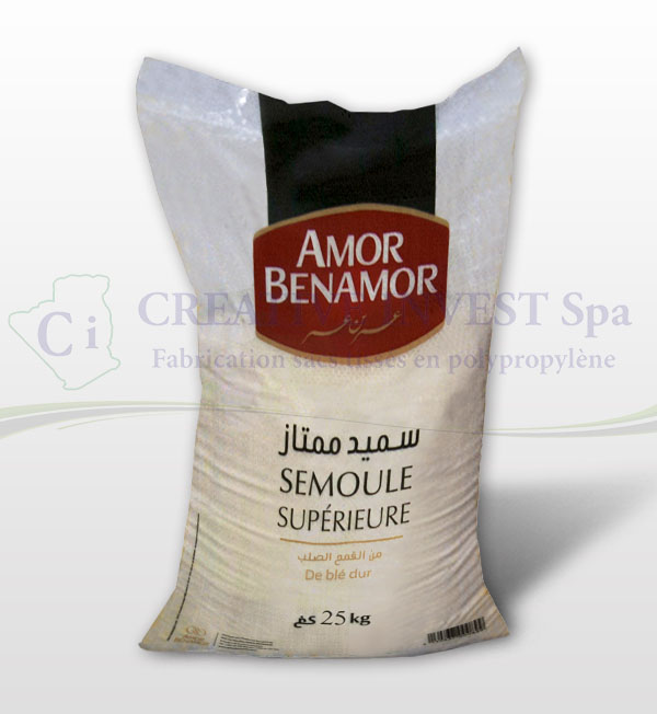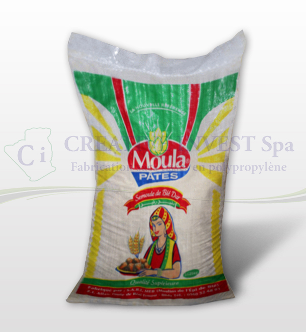 PLUSNous produisons des sacs à gueule ouverte fabriqués à partir de la toile tubulaire en polypropylène tissé cousu au fond sur simple pli, de dimensions diverses pour des contenances variées, avec possibilité d’impression personnalisées avec un nombre de couleurs illimité. Étudiés pour l’emballage d’une large gamme de produits alimentaires et chimiques: semoules, farines, pates alimentaires, couscous, légumes secs, céréales